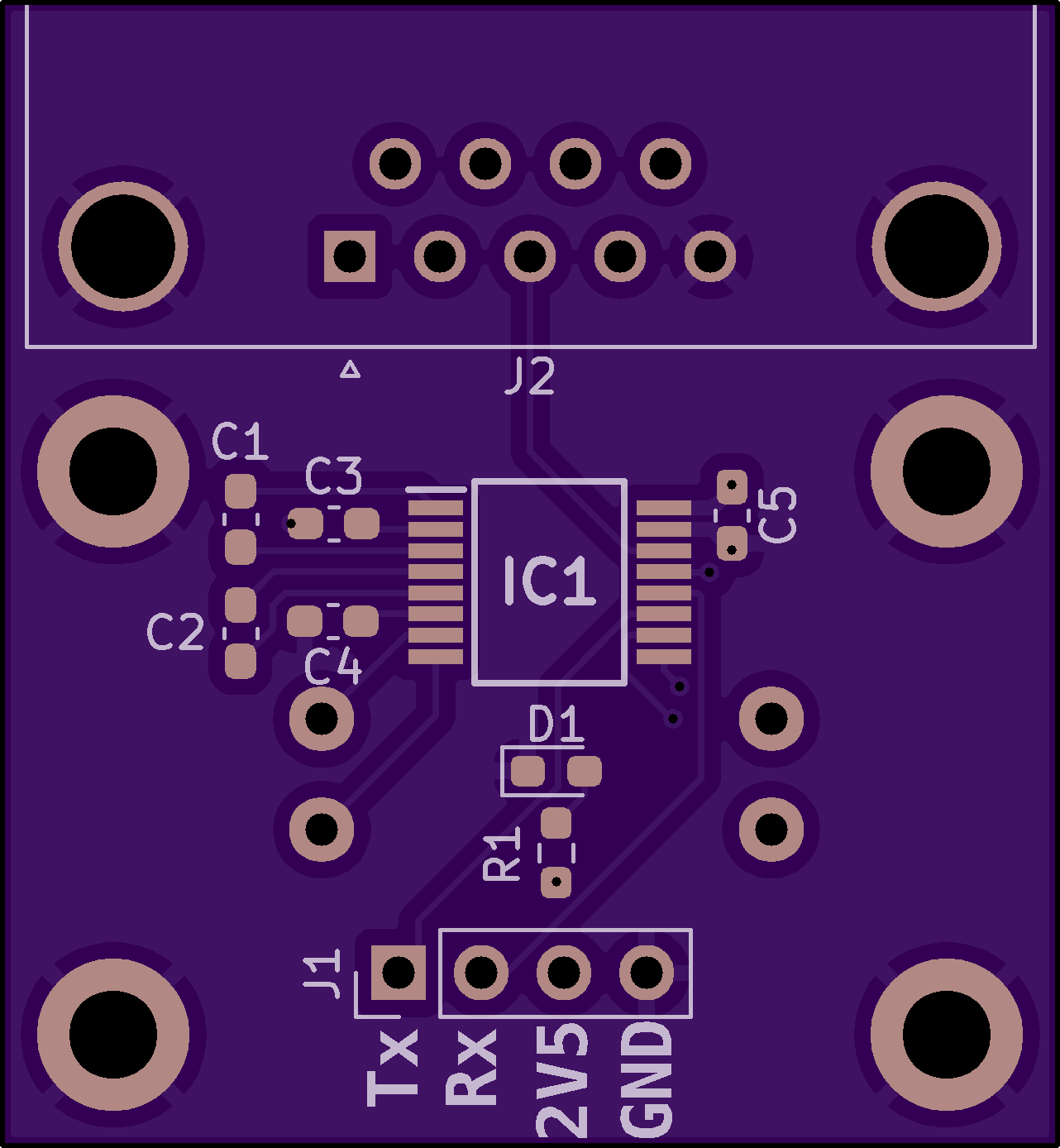 We needed a 2.5V UART to RS232 Adapter for a development project. I was unable to find anything lower than 3.3V available on Amazon/Digikey/Mouser, and rather than use a level shifter I opted to create my own.